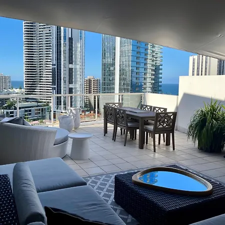 Apartmán Private Sky Terrace Classic Penthouse 2 Car Parks se nachází 3 km od Zábavní centrum Slingshot ve městě Gold Coast a nabízí plavecký bazén. Apartmán má rozlohu 238 m² a je vybaven 3 ložnicemi, 3 koupelnami a sdílenou kuchyní.